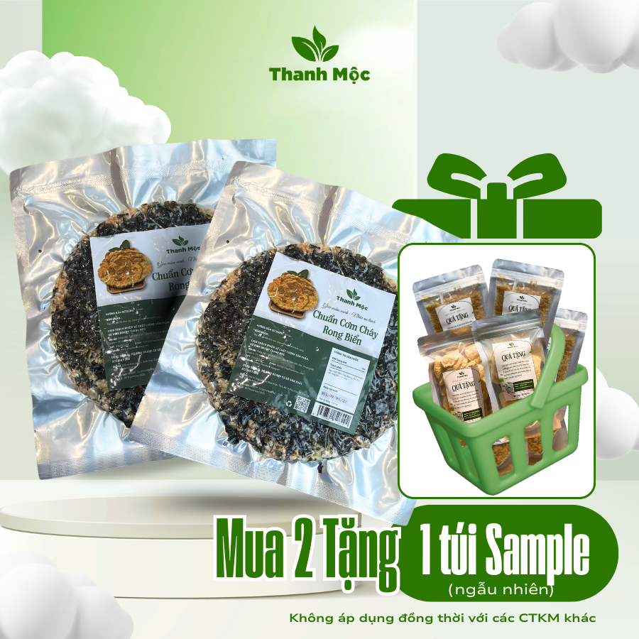 Chuẩn Cơm Cháy Rong Biển Thanh Mộc mang đến trải nghiệm ẩm thực đặc biệt với cơm cháy giòn rụm kết hợp rong biển thơm lừng và gia vị thuần chay. Được tẩm ướp cùng nước mắm chay, mè rang và chút đường, món ăn này có vị mặn ngọt hài hòa, kích thích vị giác ngay từ miếng đầu tiên.